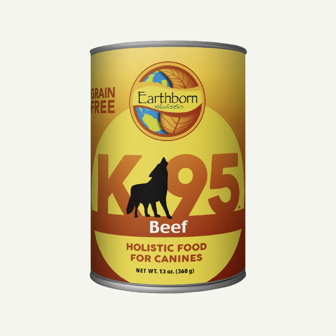 Earthborn Holistic K95 dog food is a single meat protein moist dog food. This grain- and gluten-free recipe is crafted with wholesome fruits and veggies, essential nutrients, and added vitamins and minerals. Our K95 canned dog food recipes can be served as a tasty stand-alone meal or as a topper or mixer added to your dog’s regular dinner.