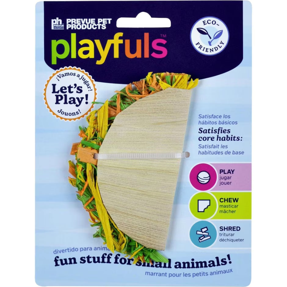 - Shreddable raffia and paper ribbons bound into a taco-like shell will stimulate the mental capacity of small animals